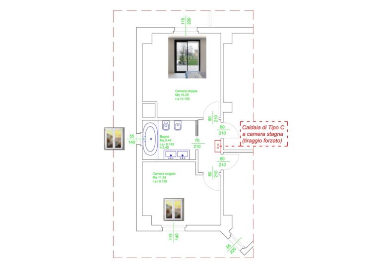 «Sono stato interpellato da un’impresa che sta ristrutturando un appartamento di proprietà privata. Mi hanno chiesto se sia possibile installare una caldaia uso riscaldamento e produzione acqua calda sanitaria di Tipo C (camera stagna e tiraggio forzato) in un disimpegno come indicato nel disegno allegato.