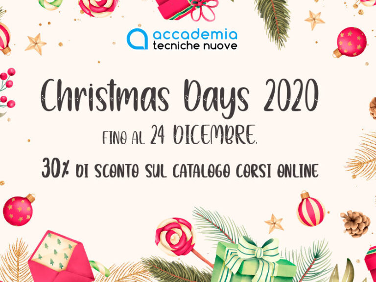 Accademia Tecniche Nuove, società dell’omonimo gruppo editoriale che si occupa di servizi educativi per professionisti e aziende, lancia Christmas Days 2020, i giorni dedicati alla formazione professionale. Fino al 24 dicembre sarà possibile iscriversi in anticipo ai corsi online del catalogo 2021 di Accademia Tecniche Nuove, usufruendo del 30% di sconto. Tante le nuove proposte…