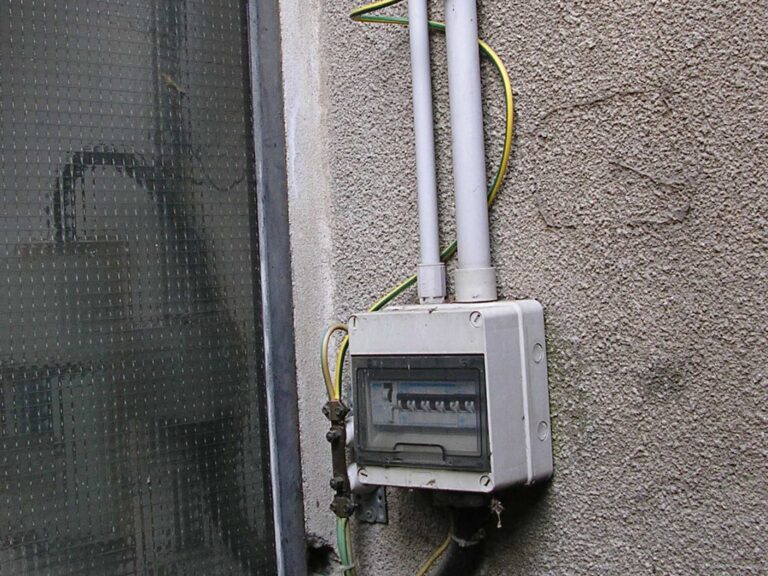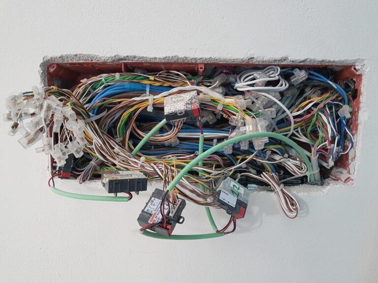 Cavi della corrente giuntati col nastro adesivo e nella stessa scatola (sfondata) anche antenna e citofono!