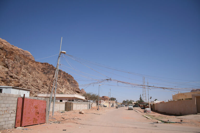 “I collegamenti elettrici in un villaggio situato nel Wadi Rum, Giordania”