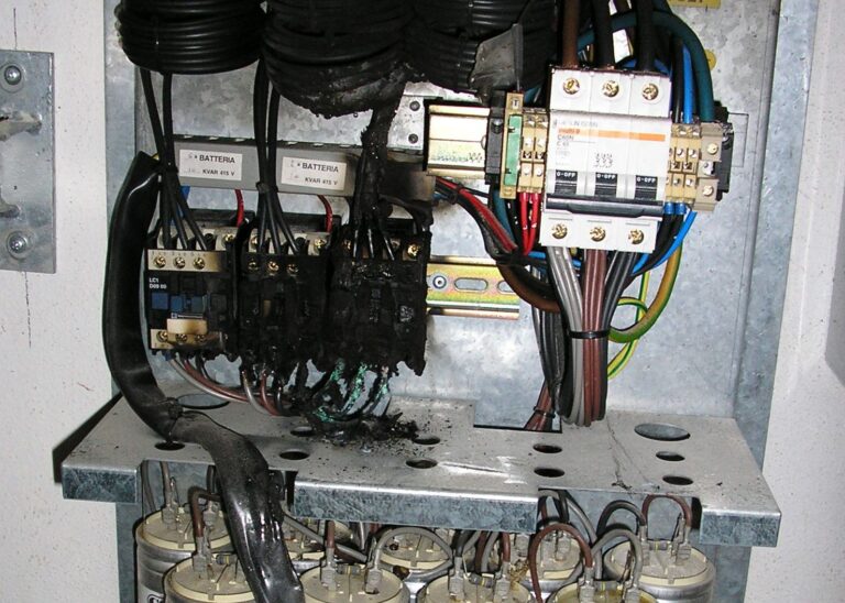 Guasto a un gruppo automatico di rifasamento, causato dal mancato serraggio dei conduttori attestati ai contattori. Danno economico per penali del distributore di energia elettrica, rischio di incendio. C.M. Bollate (MI)