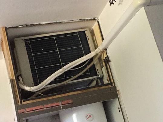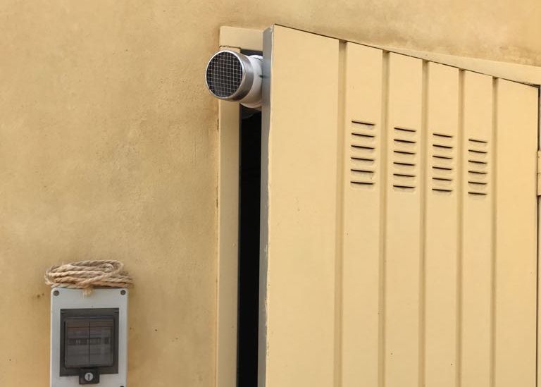 Un “originale” scarico per la caldaia a gas… notare il ferma-porta!