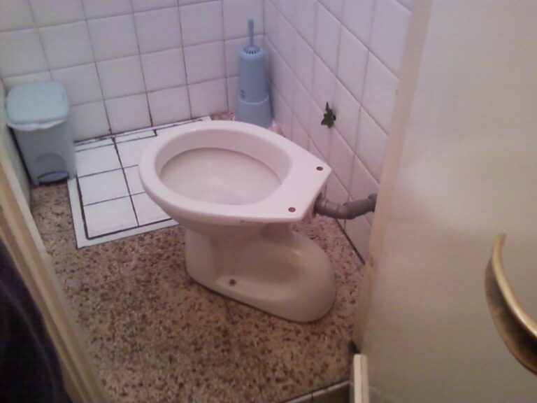 Trasformazione del bagno da turca a WC: peccato che il water sia sulla soglia!