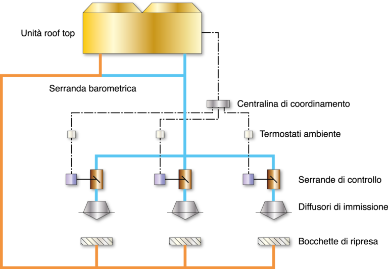 IL QUESITO Ho climatizzato tre sale riunioni adiacenti, tutte previste per un affollamento di 30 persone e aventi la stessa superficie (100 m2 circa), la stessa esposizione e le stesse dimensioni utilizzando un’unità roof top per solo raffreddamento controllata da un termostato posto sulla ripresa e un sistema di mandata e ripresa a canali con…