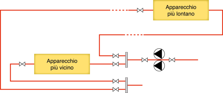 Può capitare che per questioni di spazio due caldaie o due refrigeratori identici e serviti dallo stesso gruppo di pompe posto accanto ad uno di essi, non potendo venire posti l’uno accanto all’altro debbano venire posti in luoghi l’uno lontano dall’altro (Figura 1) con conseguenti problemi di distribuzione idraulica dovuti alla differenza tra le perdite…