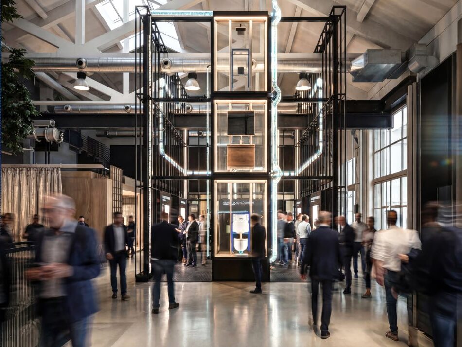 La sfida del nuovo spazio è stata quella di tradurre in forma progettuale l’expertise e il know-how idraulico di Geberit, sintetizzate nel concept “Mastering Water”, che esprime il DNA dell’azienda e la sua capacità di gestire l’acqua lungo tutto il suo percorso all’interno degli edifici. L’acqua, infatti, svolge tre funzioni fondamentali: è indispensabile per la nutrizione, viene utilizzata per l’igiene e la pulizia e agisce come mezzo di trasporto per sostanze e materiali. Da qui nasce l’approccio olistico di Geberit alla gestione dell’acqua: una risorsa da governare in modo controllato, efficiente e sostenibile, sempre al servizio del benessere quotidiano delle persone.