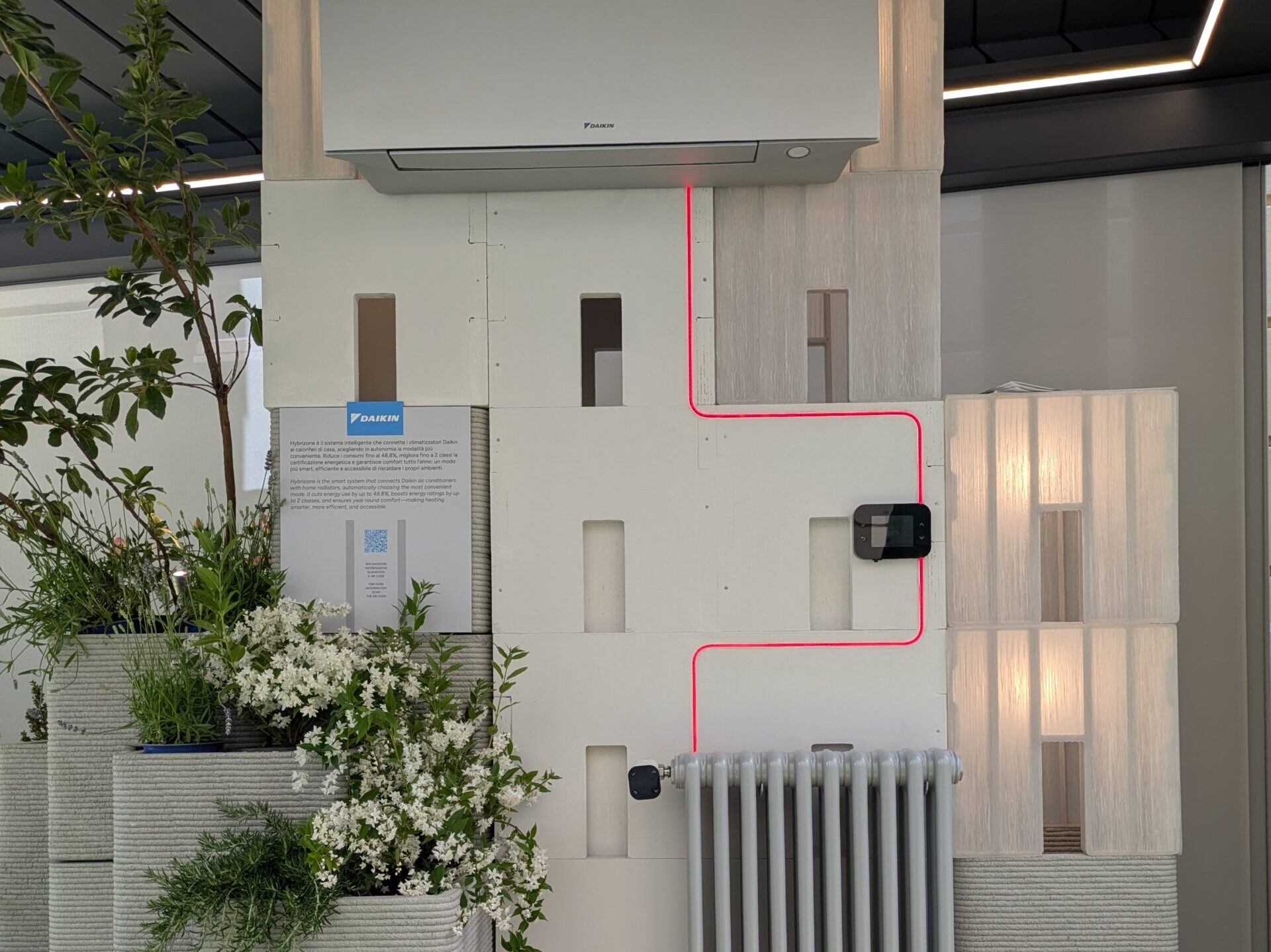 All’interno dell’ala Moscova viene inoltre presentato Hybrizone, una soluzione che rappresenta un tassello importante della strategia di Daikin verso la decarbonizzazione. Il sistema permette di integrare in modo intelligente climatizzatori e radiatori esistenti, ottimizzando la produzione di calore stanza per stanza senza interventi invasivi sull’impianto. Grazie a un controller intelligente e a un algoritmo avanzato, Hybrizone sceglie autonomamente la fonte energetica più efficiente in base alle condizioni esterne e alle abitudini dell’utente, offrendo un equilibrio ottimale tra comfort e risparmio. Secondo studi condotti dall’Università di Padova, la soluzione consente una riduzione dei consumi energetici fino al 48,8% e può migliorare fino a due classi energetiche l’efficienza dell’immobile.