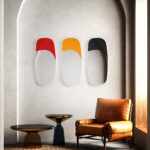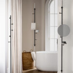 Nello showroom trovano spazio anche le ultime collezioni della designer Bruna Rapisarda: gli specchi Art e il sistema di accessori Hang Verticale. Con Art, lo specchio diventa un elemento espressivo e decorativo, capace di dialogare con l’architettura attraverso colore e riflesso; con Hang Verticale, la funzione si traduce in un segno essenziale e trasversale, pensato per organizzare lo spazio con leggerezza e libertà compositiva.