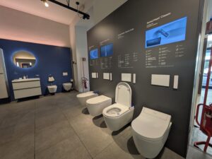 In concomitanza con l’installazione Balcoon-Scapes, Duravit tiene aperto lo showroom di via San Gregorio 49/51, dove sono in mostra le novità Balcoon 2026. L’esposizione comprende anche iconiche serie per il bagno come Me by Starck Hero Edition di Philippe Starck e la Collection One Design by Studio F. A. Porsche. Inoltre, vengono presentate nuove soluzioni per il lavabo come Ocavo di Christian Werner e novità tecnologiche, tra cui i vasi con sedile elettronico SensoWash.