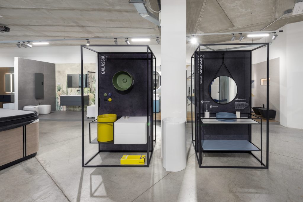 L’aggiornamento dell’esposizione è continuo e segue gli ultimi trend del settore, tra cui i sanitari colorati