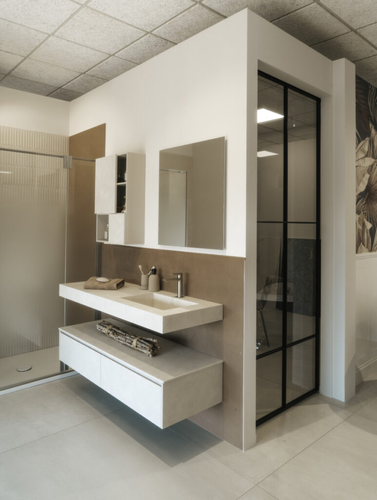 Frutto di investimenti, ricerca e costante adeguamento dei prodotti offerti a una clientela sempre più esigente, la società oggi è una solida realtà con tre punti vendita: a Mirandola (MO), Castellarano (RE) e Tolentino (MC). La sede principale di Mirandola ospita sia la rivendita edile sia uno showroom di 400 m2, mentre è di 200 m2 la sala mostra di Tolentino, aperta nel 2023. Entrambi gli showroom propongono un’offerta selezionata (più ampia nello showroom di Mirandola) di materiali e prodotti per il bagno.