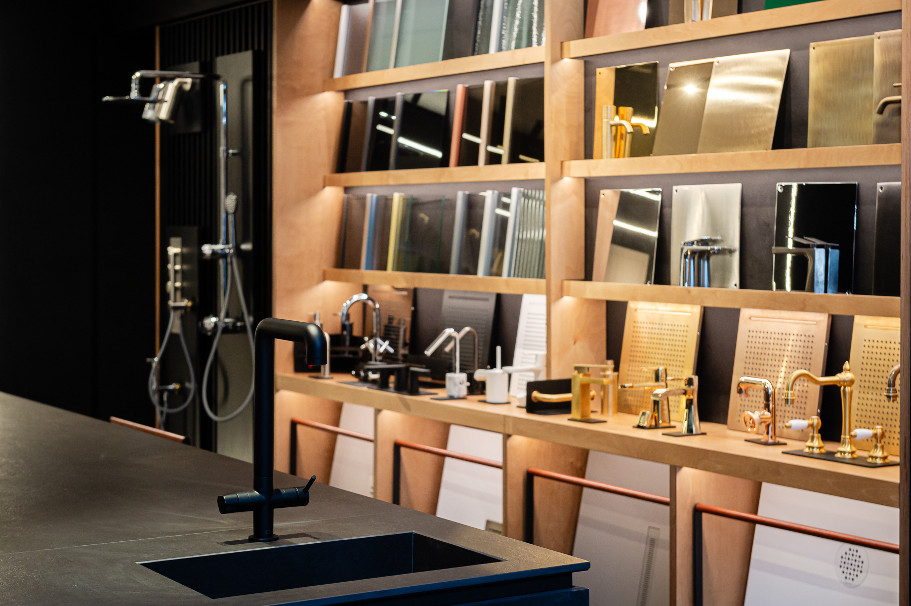 Dopo l’inaugurazione della prima sezione, che ospita circa 3.500 campioni fisici di materiali per la casa, quest’anno abbiamo deciso di estendere il concept anche al mondo dell’idrotermosanitario e di tutto ciò che è legato all’acqua, con rubinetteria, piatti doccia, lavabi, rivestimenti e altri accessori per il bagno. I primi partner ad aderire al progetto sono stati Arblu, specializzata in box e piatti doccia, e WeAreIB, con oltre trent’anni di esperienza nel settore dei rubinetti di alta qualità, ma la nostra intenzione è quella di dare vita a una vera e propria rete di connessioni tra le aziende per arricchire sempre più l’offerta presente in showroom.