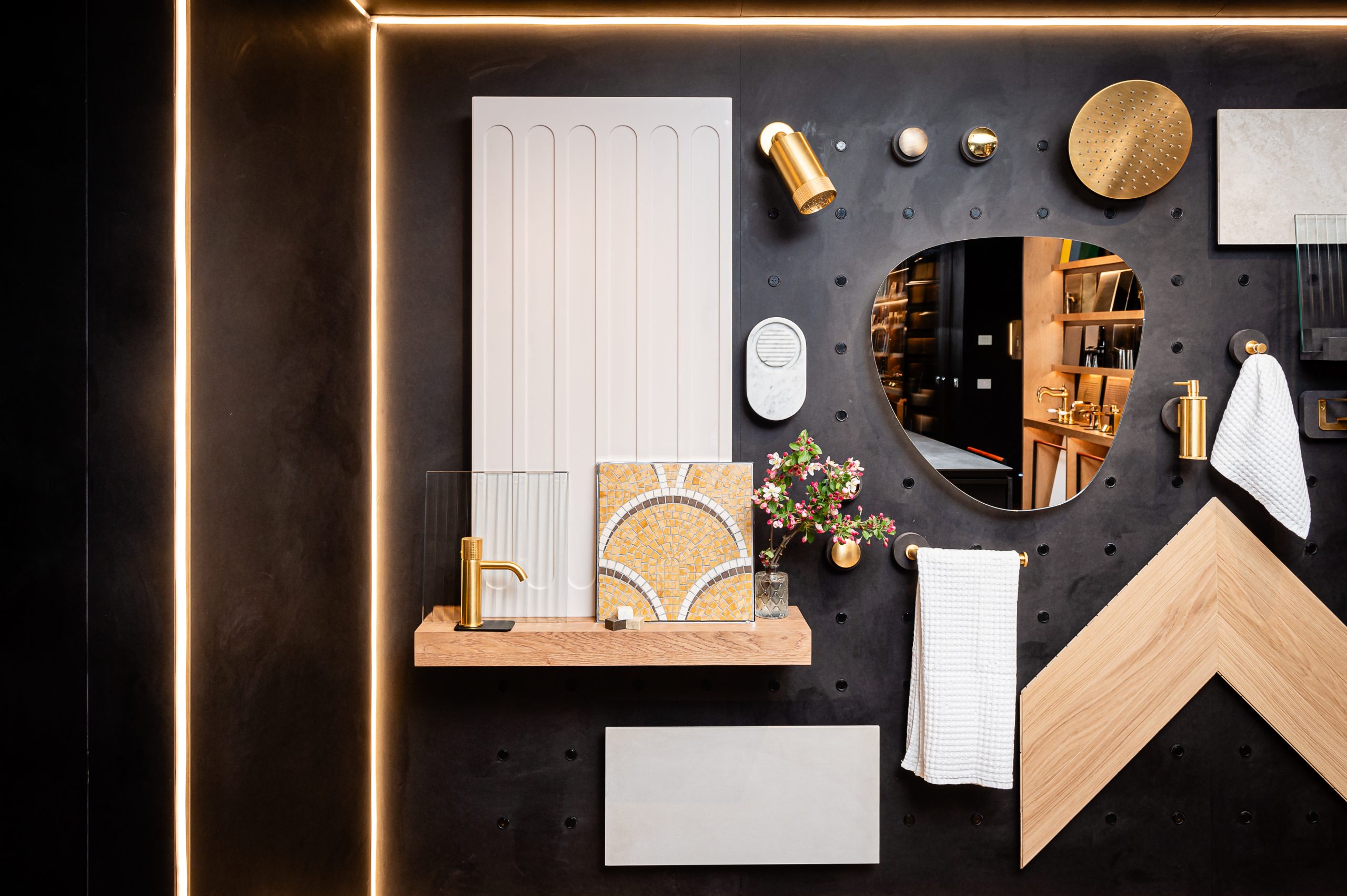 È uno spazio in divenire, nel senso che è destinato a evolvere ospitando a rotazione le nuove proposte delle aziende, realizzando focus tematici (in un caso ci siamo ispirati, per esempio, alle architetture milanesi) e lanciando spunti e suggerimenti ai professionisti. Lo stesso concept viene riproposto, su scala diversa, con piccole still-life e moodboard bi e tridimensionali che realizzano associazioni anche audaci tra diversi colori e finiture, stimolando i professionisti a sperimentare con materiali tradizionalmente non associati all’ambiente bagno e a creare accostamenti inediti e non scontati.