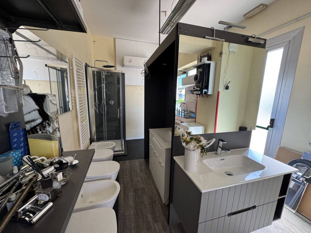 Lo showroom, creato in un’area del magazzino tre anni dopo l’apertura della società, espone sanitari, rubinetteria, box doccia e arredo-bagno, con un approccio funzionale alla consulenza e all’esposizione.