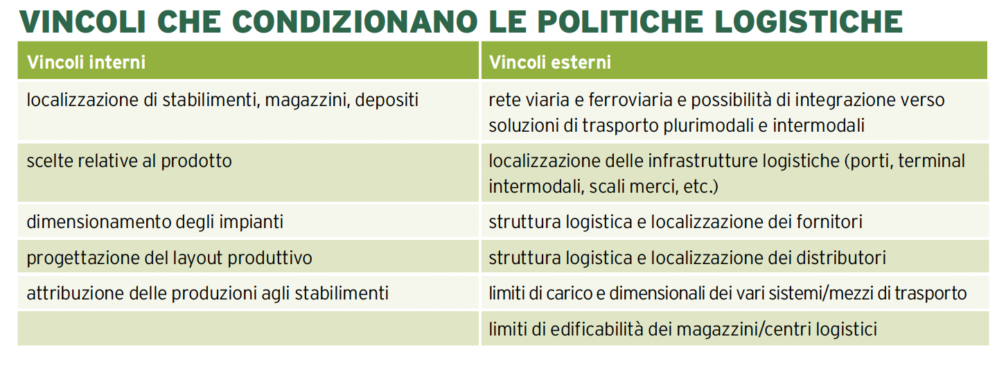 I vincoli che condizionano le politiche logistiche