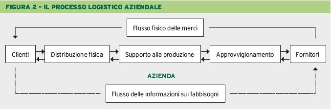 Il processo logistico prevede una serie di attività che generano due flussi distinti e correlati tra di loro e precisamente: il flusso fisico e il flusso informativo sui fabbisogni.