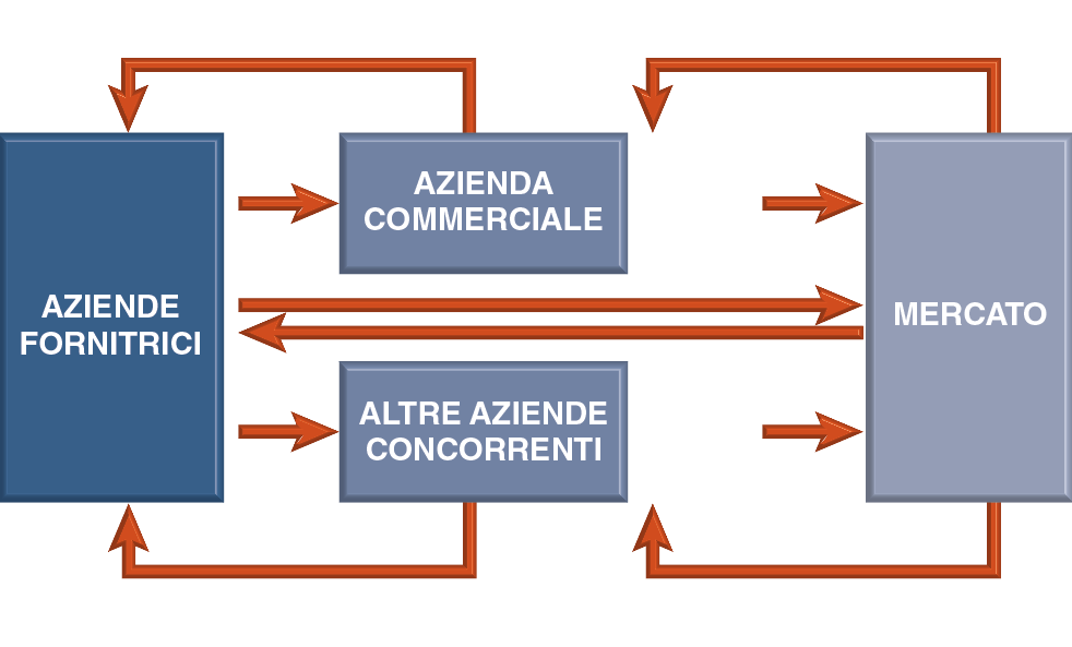 Il punto di vendita di ITS intrattiene questi rapporti nell’ambito di un ambiente mercatistico nel quale giocano ovviamente anche altri attori: le aziende fornitrici, i punti di vendita concorrenti e, naturalmente, i suoi segmenti di mercato-obiettivo e i suoi specifici clienti; le cui azioni incidono più o meno positivamente sui suoi risultati di mercato. La figura 1 illustra schematicamente la struttura di queste interrelazioni.