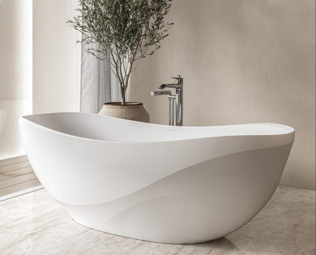 Ledro è la vasca a pantofola che risponde alla domanda “Come ridurre il consumo di acqua senza sacrificare il design o un’esperienza di bagno di lusso, coniugando la ridotta capacità idrica con un design comodo ma raffinato