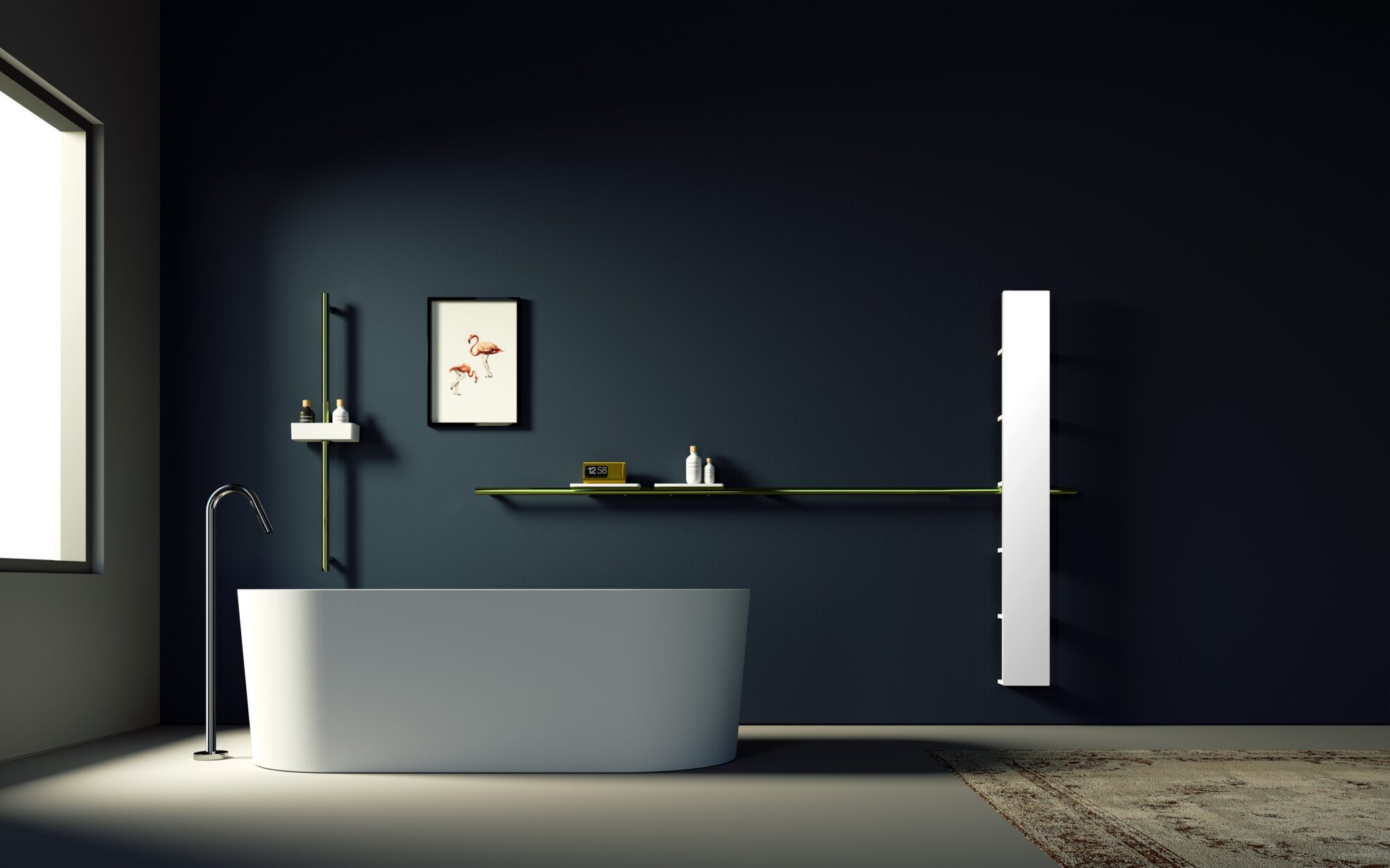 La collezione, ricca di elementi versatili e completi che permettono di muoversi in bagno con sicurezza e svolgere attività quotidiane di cura di sé con naturalezza e serenità, è disegnata da Daniele Trebbi. Tra le scelte stilistiche c’è, ad esempio, la modifica della forma dei sostegni da tondo ad ovale.