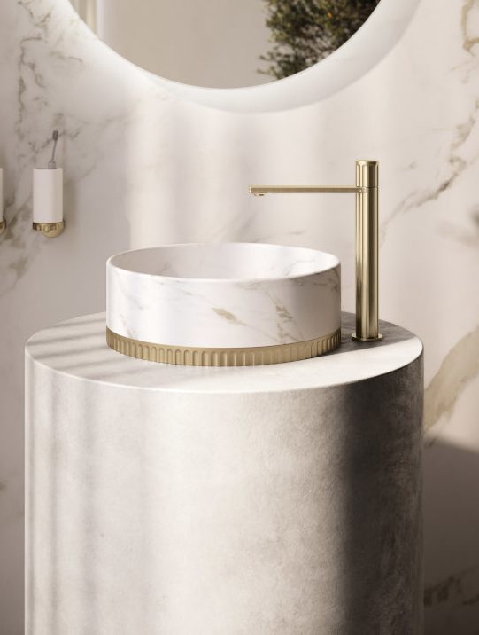 Il richiamo all’ordine classico si palesa nei dettagli scanalati della collezione, caratterizzata da modanature lineari che diventano il segno distintivo di ogni articolo Ionika. Nel rievocare i capitelli dell’architettura greca, Newform concepisce i miscelatori monocomando come remake di un originario sistema trilitico: alla tipica composizione di due elementi verticali e uno orizzontale corrispondono corpo, maniglia e canna della serie.