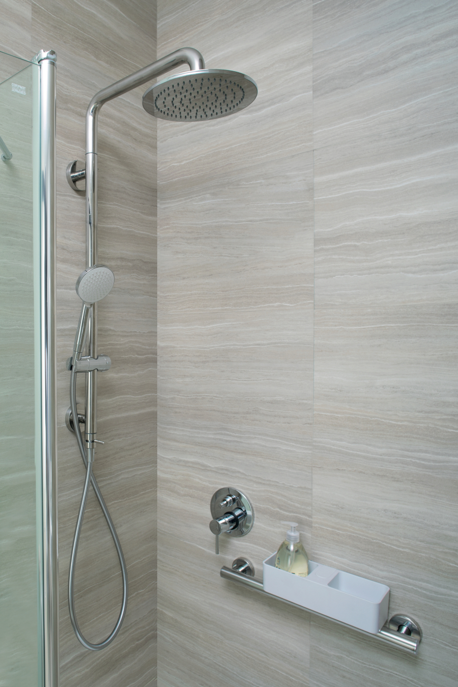 «È progettata per garantire la massima sicurezza nella zona doccia. Questo ambiente, soggetto a un’usura costante dovuta alla combinazione di acqua e sapone, richiede soluzioni innovative per ridurre il rischio di cadute.