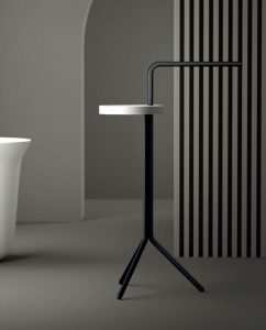La collezione di piantane da bagno Tratto si sviluppa in diverse configurazioni, che integrano porta-salviette e accessori multifunzionali
