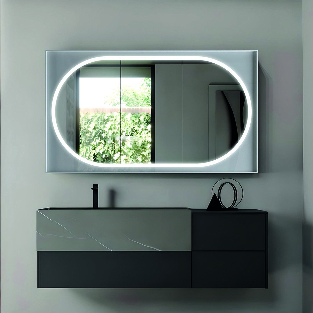 «Innanzitutto, i telai dei nostri specchi sono realizzati con PVC estruso che contiene il 50% di materiale riciclato. Abbiamo attivato un processo di economia circolare che ci permette di trasformare il 100% degli scarti e ritagli di PVC in nuovi telai, mantenendo le stesse caratteristiche di durabilità dei materiali vergini, ma con un impatto ambientale decisamente ridotto.