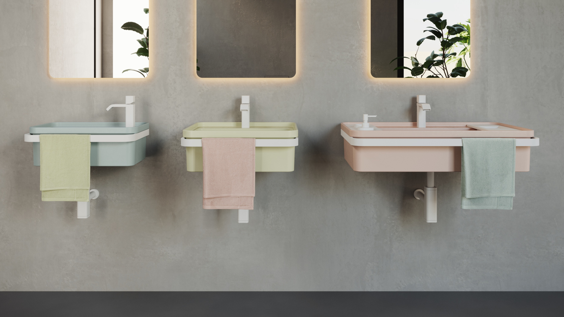 «La palette Nuance reinterpreta i toni pastello classici, con varianti di verde, rosa, beige, celeste e grigio che si mimetizzano con delicatezza nell’ambiente bagno. Essence, invece, presenta colori essenziali (sabbia, caffè, grafite, magnesio e ghiaccio) per un bagno moderno, dove l’oggetto ceramico è protagonista assoluto. Completano la proposta il bianco lucido e il celebre bianco panna opaco, un vero e proprio simbolo di eccellenza per SDR».