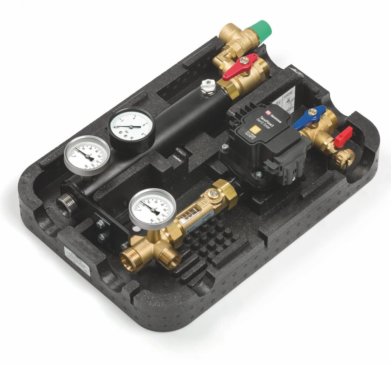 Le stazioni a doppia linea includono inoltre una valvola di sfiato per la separazione permanente e automatica dell’aria, contribuendo all’efficienza e alla bassa rumorosità dell’impianto. Estremamente compatte, le stazioni TacoSol Circ possono essere installate anche in locali tecnici di ridotte dimensioni, sia in villette sia in condomini e immobili commerciali.