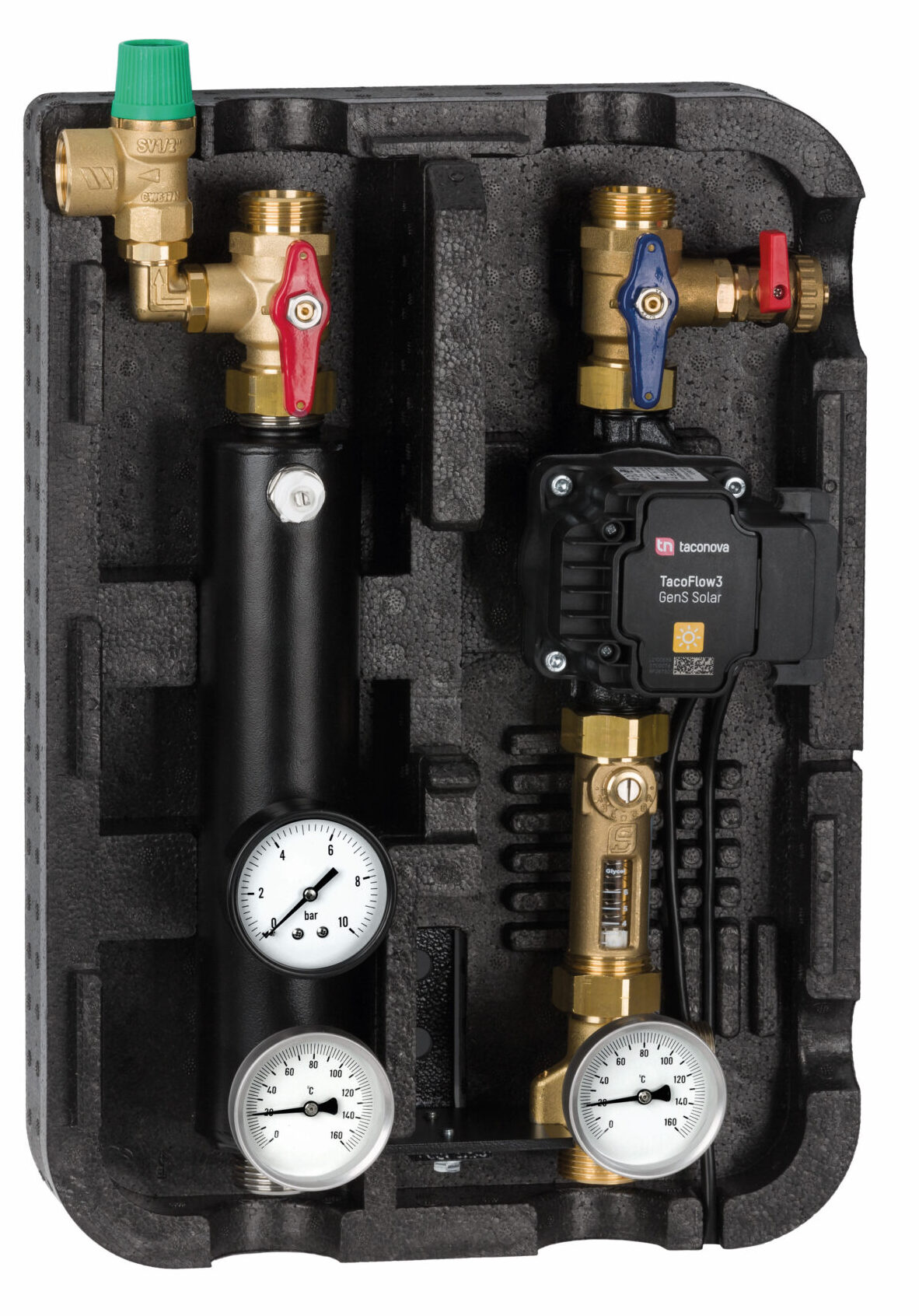 Le stazioni TacoSol Circ di Taconova, disponibili nelle versioni a linea singola TacoSol Circ ER e a linea doppia TacoSol Circ ZR, sono una soluzione all-in-one con componenti premontati (raccordi, valvole e pompe integrate), che garantisce agli impianti solari maggiore efficienza a lungo termine.