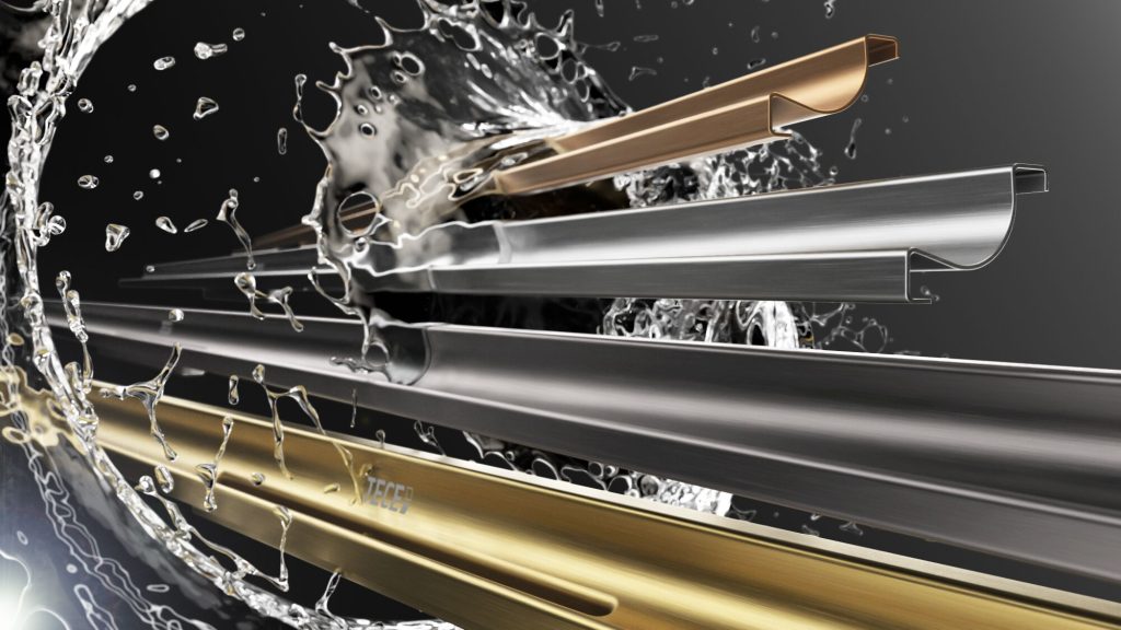 Disponibile in 4 finiture PVD, la canaletta TECEdrainway, con il suo scarico ultrasottile, ottimizza l’accessibilità e l’estetica della zona doccia. L’installazione a filo parete, agevole e precisa, garantisce una transizione impeccabile tra piastrelle e profilo di scarico.