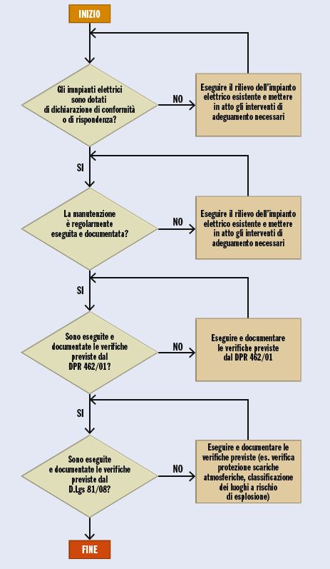 - se gli impianti elettrici non sono conformi ai requisiti di sicurezza previsti dalla normativa vigente, devono essere intrapresi degli interventi di adeguamento;