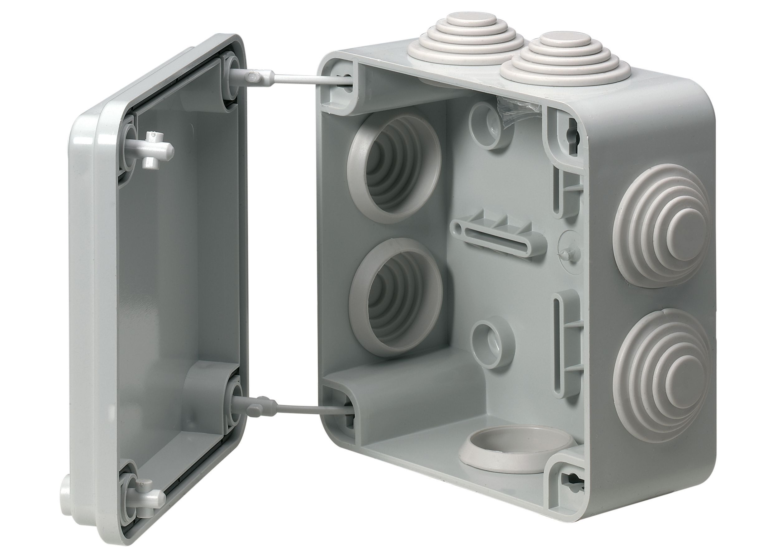 La gamma di cassette è composta da contenitori con passacavi concentrici per cavi flessibili o con passacavi a sfondamento per cavi rigidi, con pareti lisce, coperchi opachi o trasparenti, anche in versione alta, viti metalliche o in materiale isolante anche a 1/4 di giro.