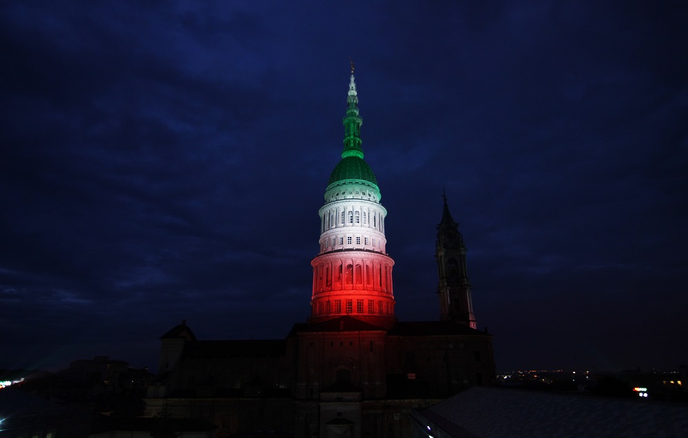 Nel dettaglio, per esaltare le diverse caratteristiche della Cupola di San Gaudenzio – la statua posta in cima, la Cupola, il corpo centrale e la base – ciascun proiettore è stato posizionato accuratamente. Il risultato è una palette cromatica che accende e anima la città. Dal verde speranza al blu elettrico, ma anche combinazioni personalizzate come quella del tricolore per un’installazione unica nel suo genere.