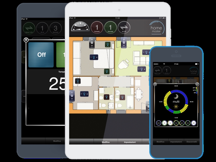 Home Master si installa sulle comuni scatole da incasso e non richiede bus, centraline o cablaggi aggiuntivi. Il sistema permette anche di impostare la temperatura, alzare le tapparelle, accendere la luce, creando il proprio ambiente ideale.