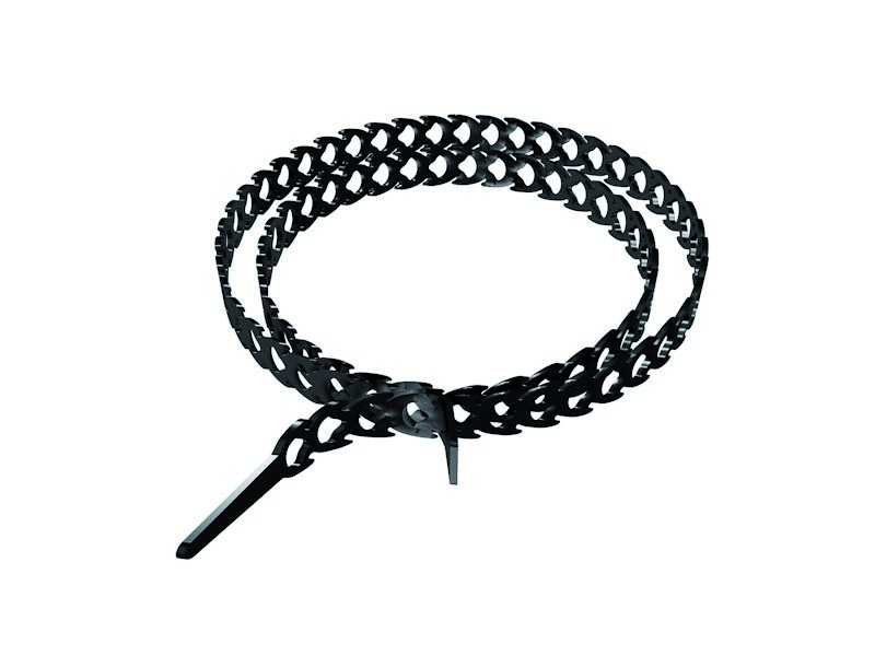 La lunghezza del prodotto è di 320 mm e permette la legatura di un’ampia gamma di tubi o cavi (da un diametro di 5 a un diametro di 85 mm).