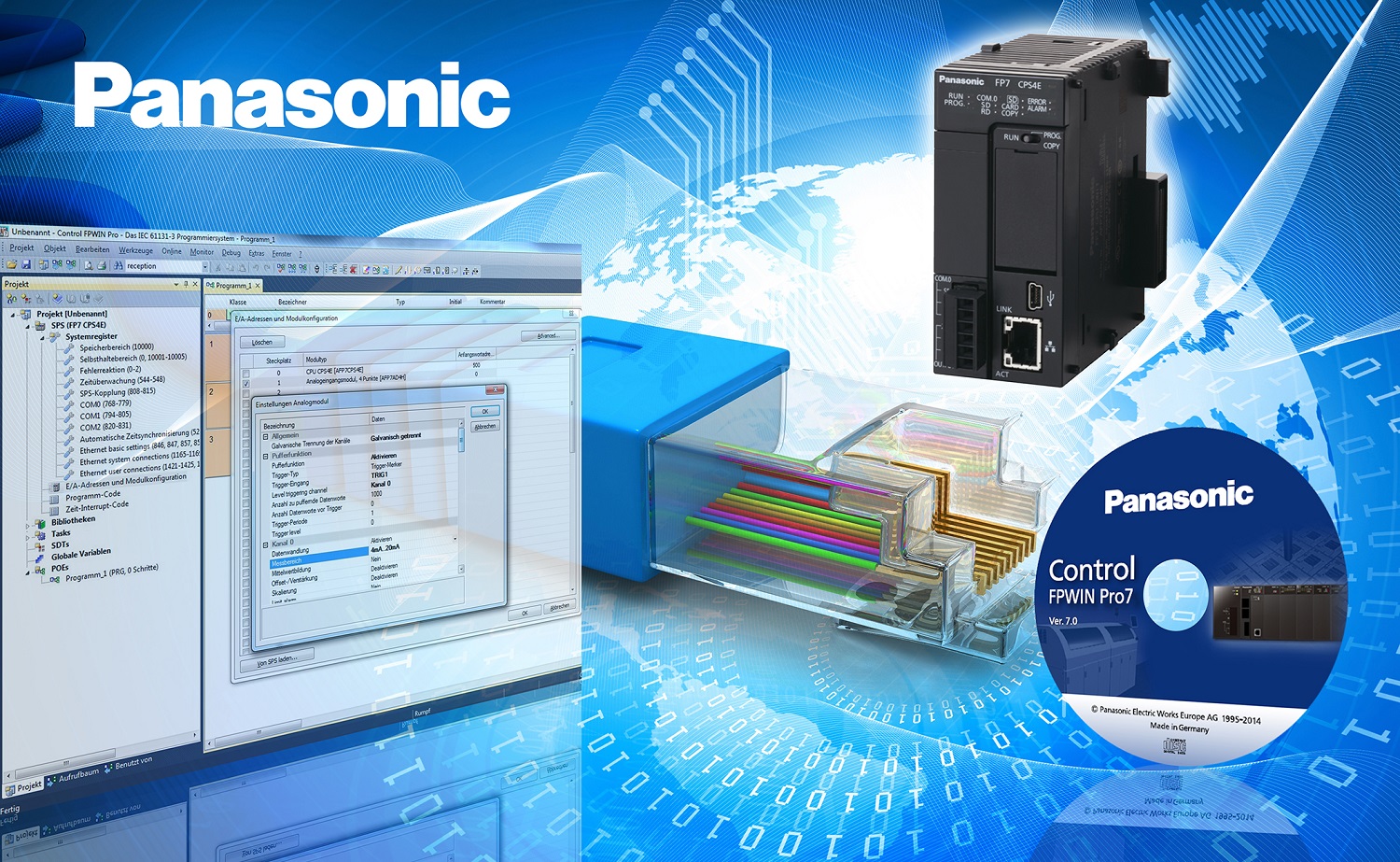 FP7PanasonicFPWIN Pro7, nuova suite di sviluppo IEC61131 per la programmazione dei PLC Panasonic, si rivela particolarmente vantaggiosa nello sviluppo di applicazioni di controllo del movimento creando un connubio perfetto tra il controllore programmabile FP7 dotato di schede assi ed i servo azionamenti Brushless MINAS A5. Innanzitutto il tool per creare profilli di motion avanzato con estrema velocità (Configurator PM7) è integrato nell’FPWIN Pro 7; in secondo luogo gli esperti motion Panasonic hanno creato una libreria software specifica e gratuita per la gestione delle funzioni motion a bordo delle schede assi: è possibile caricare e modificare i profili di camma da PLC e gestire le funzioni avanzate quali gearing e clutch, oltre alle funzioni di interpolazione presenti a bordo della scheda. Grazie alla nuova libreria motion la programmazione per gestire movimenti complessi è facilitata: hardware prestante e ambiente di sviluppo e strumenti software diventano dei tool fondamentali semplificando le attività per risolvere applicazioni, ad esempio, di “taglio al volo”, tipiche nelle macchine per la lavorazione del legno e nel tessile (taglio tessuti), nelle confezionatrici (packaging), nelle applicazioni di lavorazione della lamiera (punzonatura) e perforazione (carta e metallo) o più in generale nella gestione di movimenti legate a giostre con diverse stazioni di lavoro quali quelle presenti nelle linee di assemblaggio o nel campo medicale/farmaceutico.