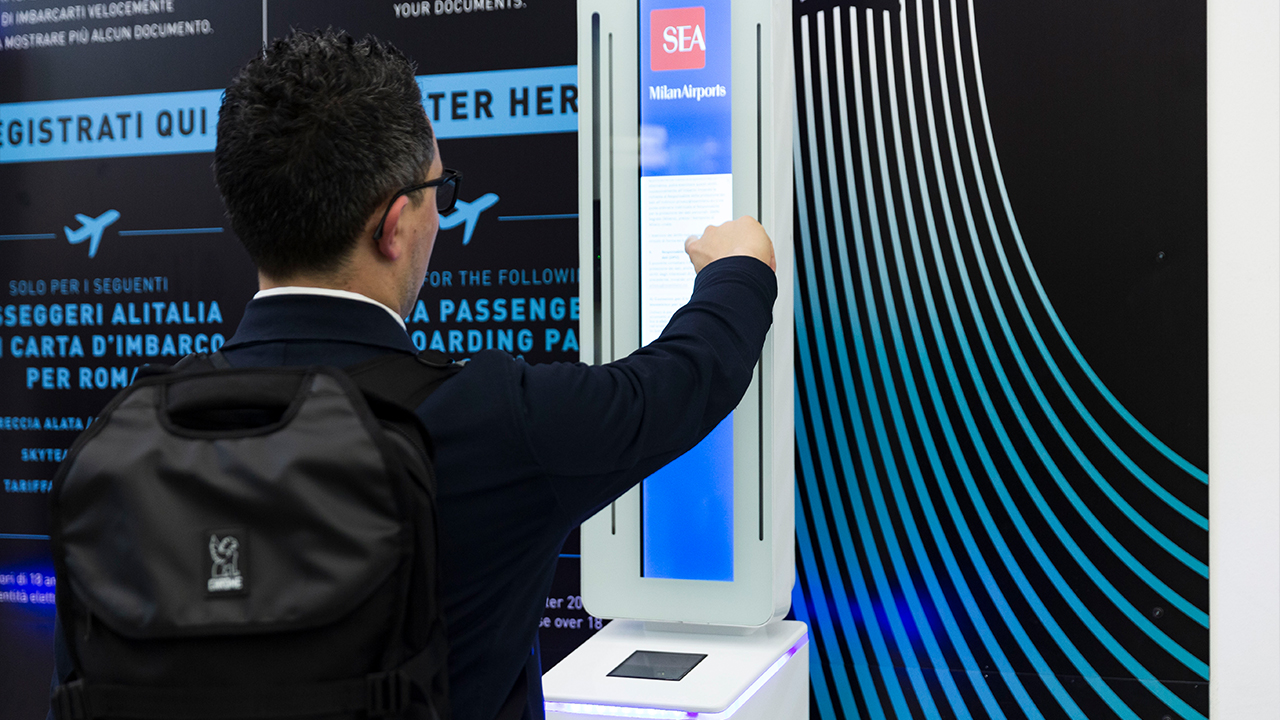 Il progetto pilota, attivo dal 30 gennaio, è stato promosso dal gestore aeroportuale italiano SEA ed è a disposizione dei passeggeri VIP della compagnia aerea Alitalia che volano da Milano a Roma. Il sistema prevede tre fasi principali lungo l’intero processo: prima, la registrazione biometrica sul sistema, poi l’accesso e la conferma dell’identità al punto di controllo sicurezza e, infine, l’imbarco sull’aereo.
