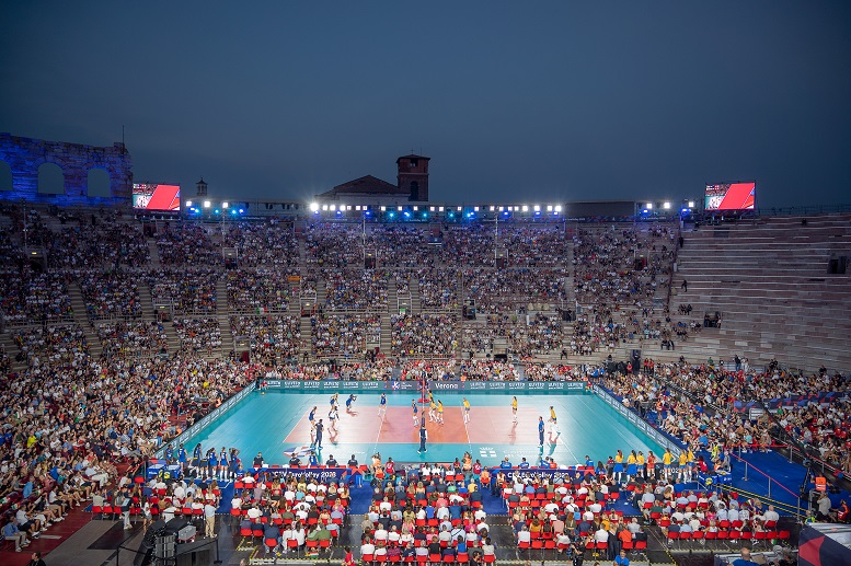 Si è lavorato senza sosta per trasformare il tempio della lirica in un campo da pallavolo allestendo campo, platea, tribune stampa. In quasi tre giorni di lavoro, duecento addette e addetti hanno trasformato l’anfiteatro romano veronese, oggi tempio della lirica, nel più suggestivo campo da gioco a cielo aperto. Uno sforzo organizzativo gigantesco: in una notte smontate le scenografie liriche.
