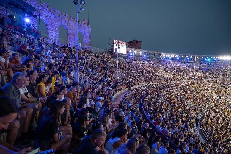 L’anfiteatro scaligero è tornato dunque ad ospitare una competizione internazionale dopo 35 anni dall’ultimo evento agonistico: la partita di pallavolo del 23 maggio 1988 tra Stati Uniti e Unione Sovietica, amichevole di apertura della manifestazione-spettacolo Mondovolley. Il muro di Berlino era ancora invalicabile e le due superpotenze della Guerra Fredda si sfidarono nel più antico tempio del divertimento veronese in una incredibile notte di sport rimasta negli annali del volley mondiale.