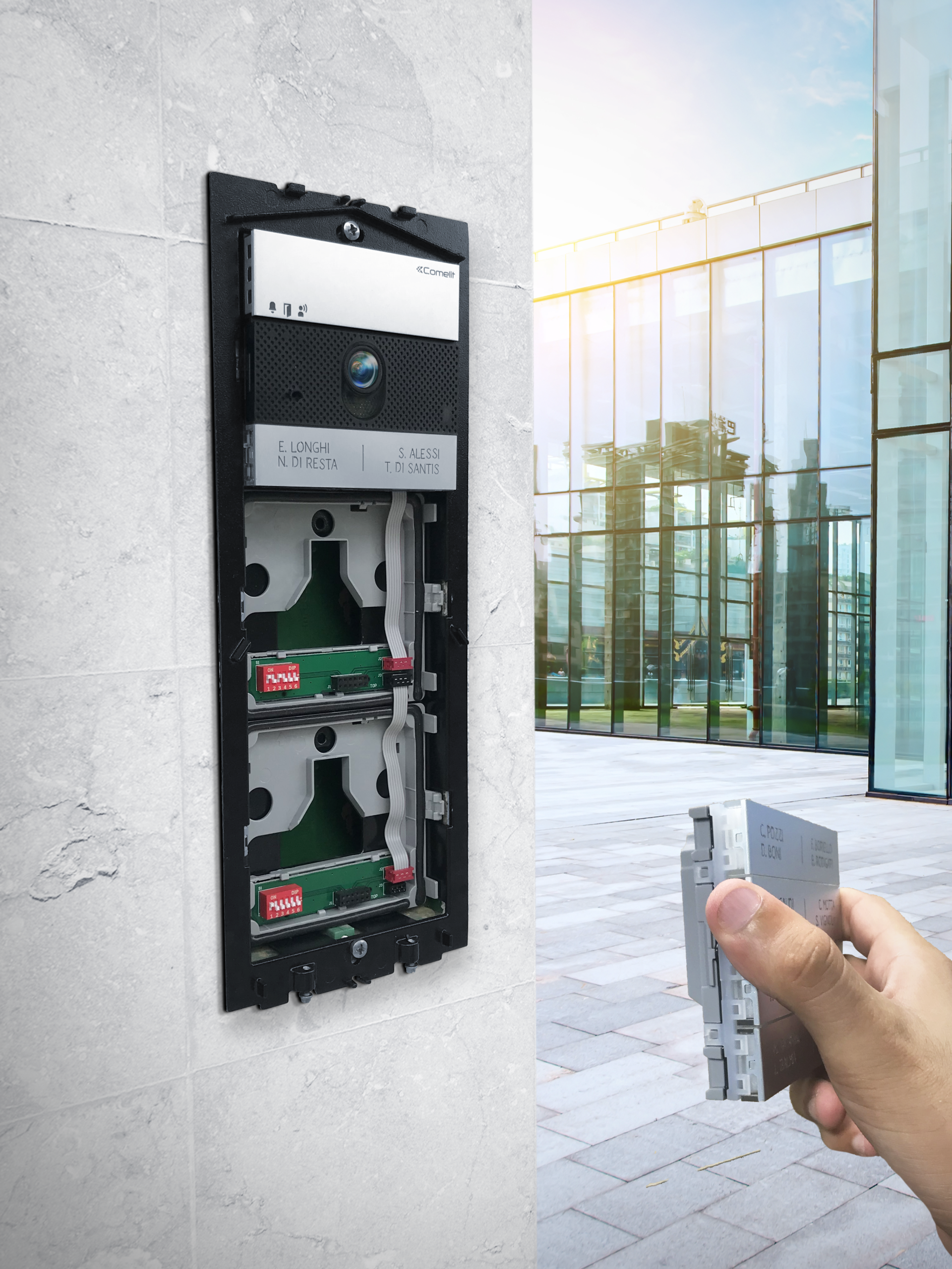 Comelit firma un nuovo brevetto legato al sistema di aggancio-sgancio dei moduli della pulsantiera Ultra, un’innovazione volta a semplificare e velocizzare il lavoro degli installatori