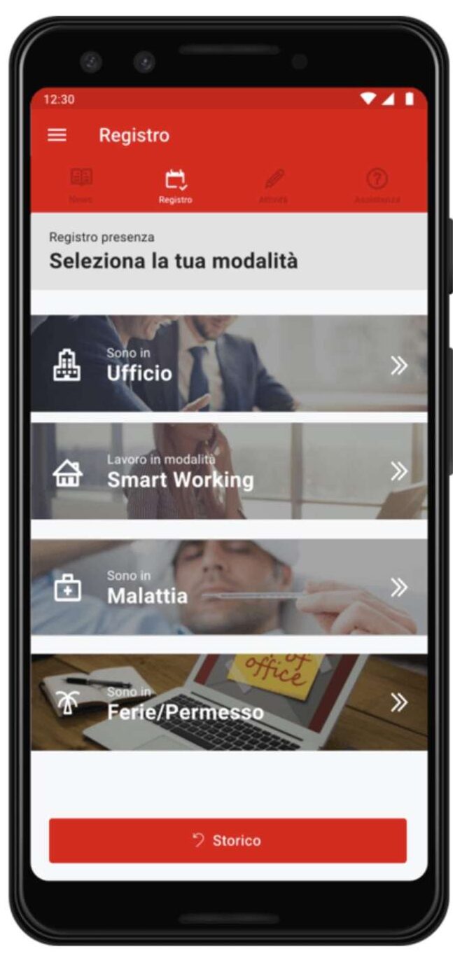 L’app si occupa anche della gestione dei turni di lavoro, di ferie e malattia e, fondamentale, dello smart working.