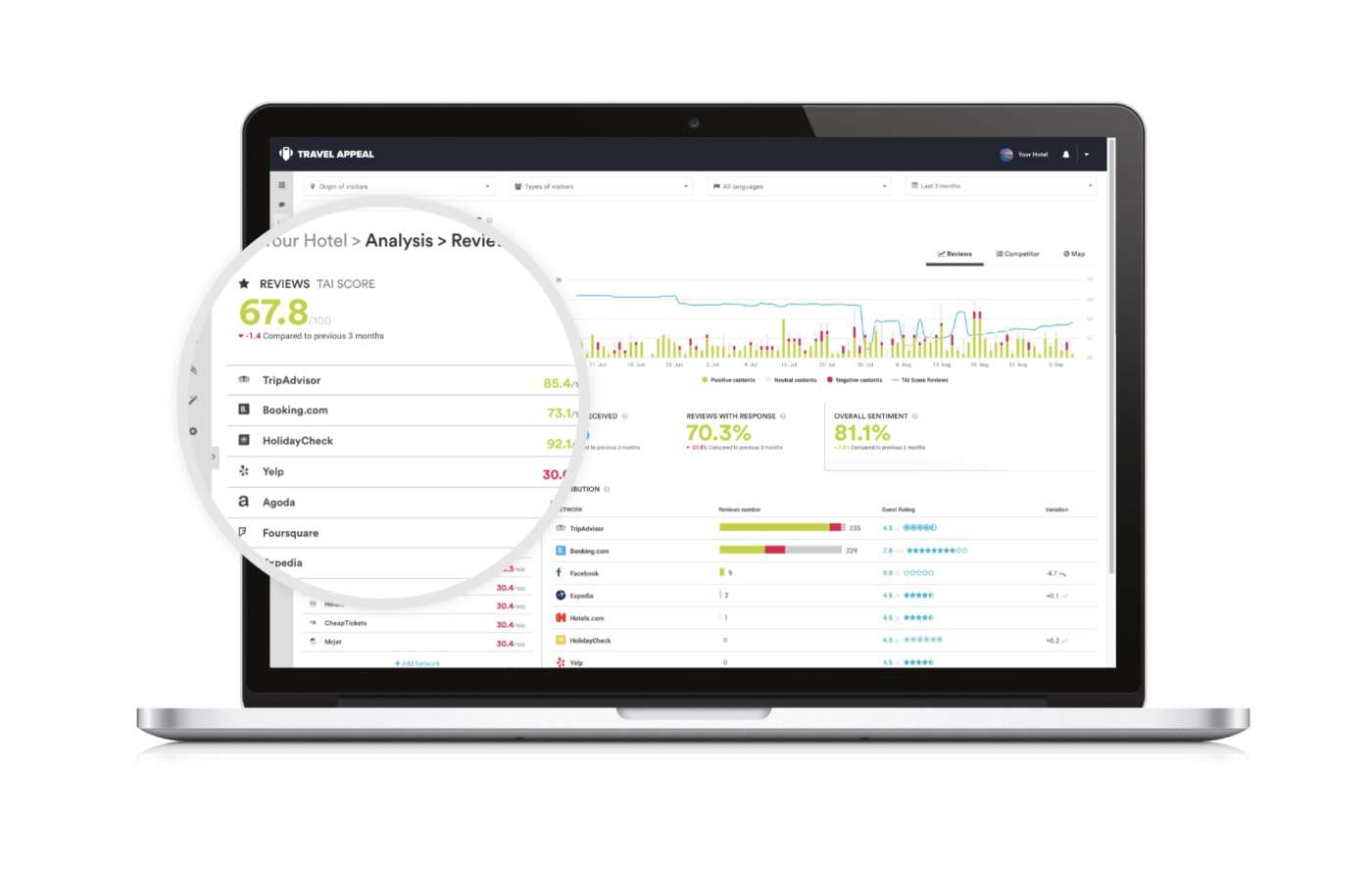 L’approccio attivo al mondo delle recensioni è un vero game changer nel mondo horeca: Il 79% dei viaggiatori legge da 6 a 12 recensioni prima di scegliere un alloggio, e l’80% dei viaggiatori apprezza un hotel ancora di più se il personale risponde con attenzione alle recensioni. Sono numeri che si commentano da soli e aumentano ulteriormente il valore intrinseco di Travel Appeal Hospitality.