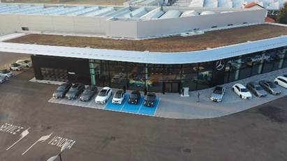 La concessionaria ha una superficie complessiva di 17.000 metri quadri, di cui 3.600 al coperto in cui sono ospitate le officine e sei stazioni di ricarica per veicoli elettrici. Anche all’esterno c’è una stazione di ricarica elettrica pubblica, attiva 24 ore su 24.