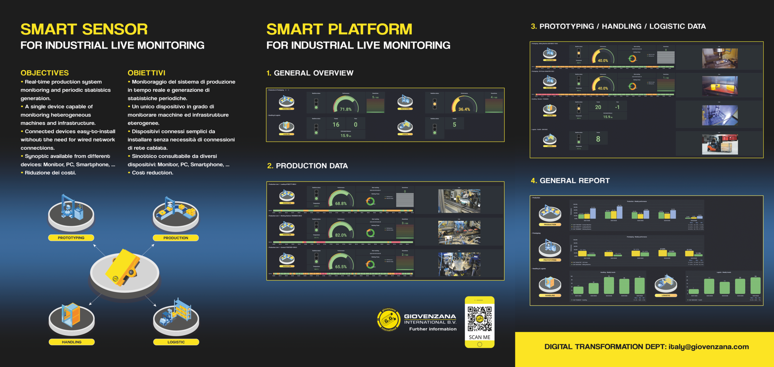 Giovenzana, in questo ultimo anno, si è occupata di innovazione di prodotto, sia incrementale che radicale: innovazione radicale realizzando un sistema per Smart Industry, innovazione incrementale traghettando le tradizionali pulsantiere elettromeccaniche nel digitale.