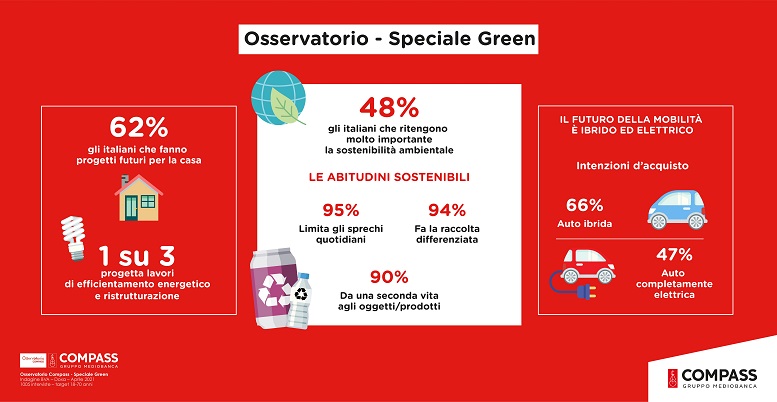 Osservatorio Compass Focus Green. Dagli acquisti ecosostenibili alle soluzioni per rendere la casa più efficiente sino alla mobilità sostenibile.