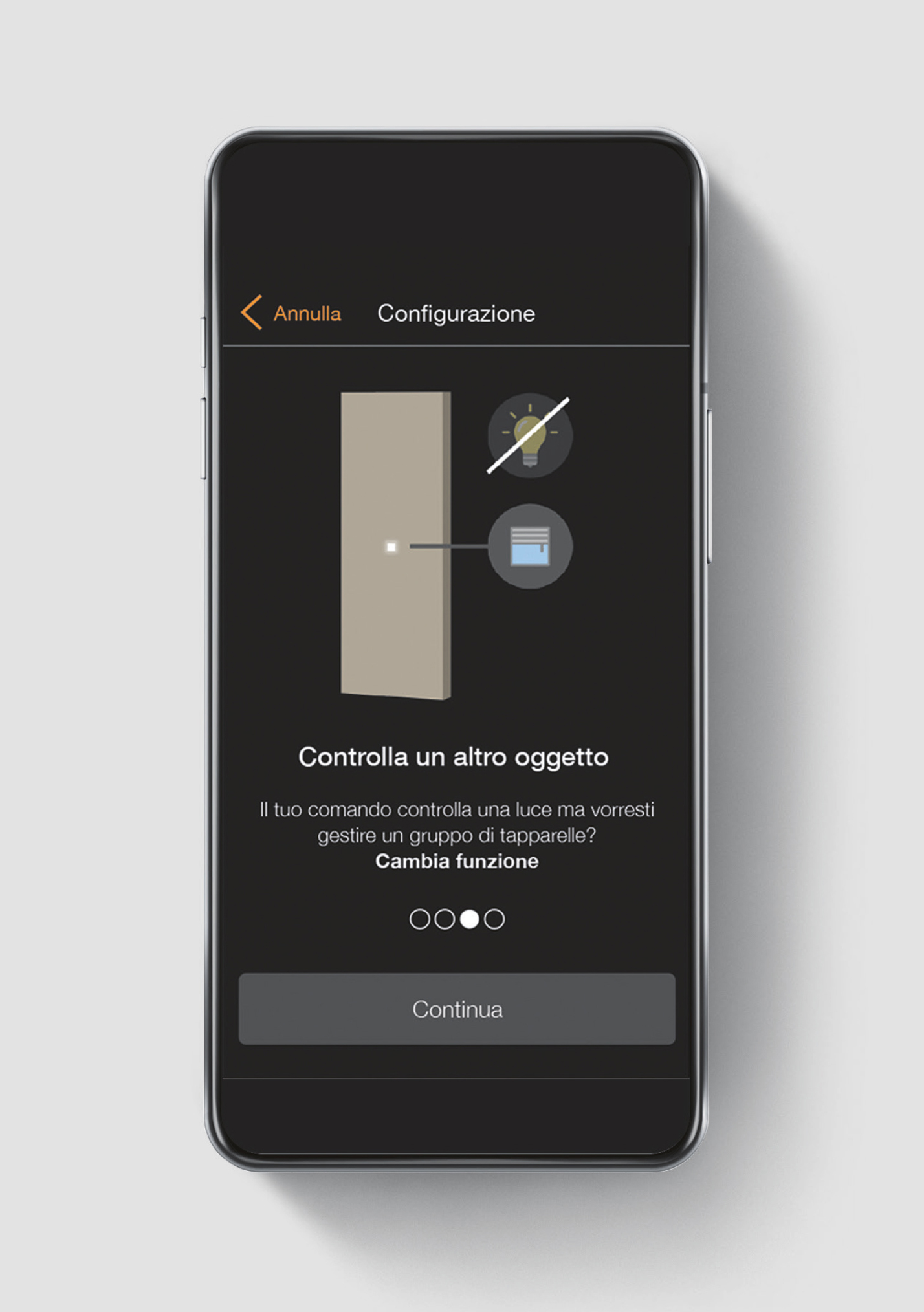 Con una sola applicazione, APP MyHome_UP, è possibile modificare o ampliare le funzioni associate ai comandi. Ad esempio: è possibile scambiare la funzione “comando dimmer” con la funzione “comando tapparella” oppure passare dalla gestione di un punto luce al comando di due luci distinte. Infinite possibilità di configurazione per una domotica semplice e flessibile.