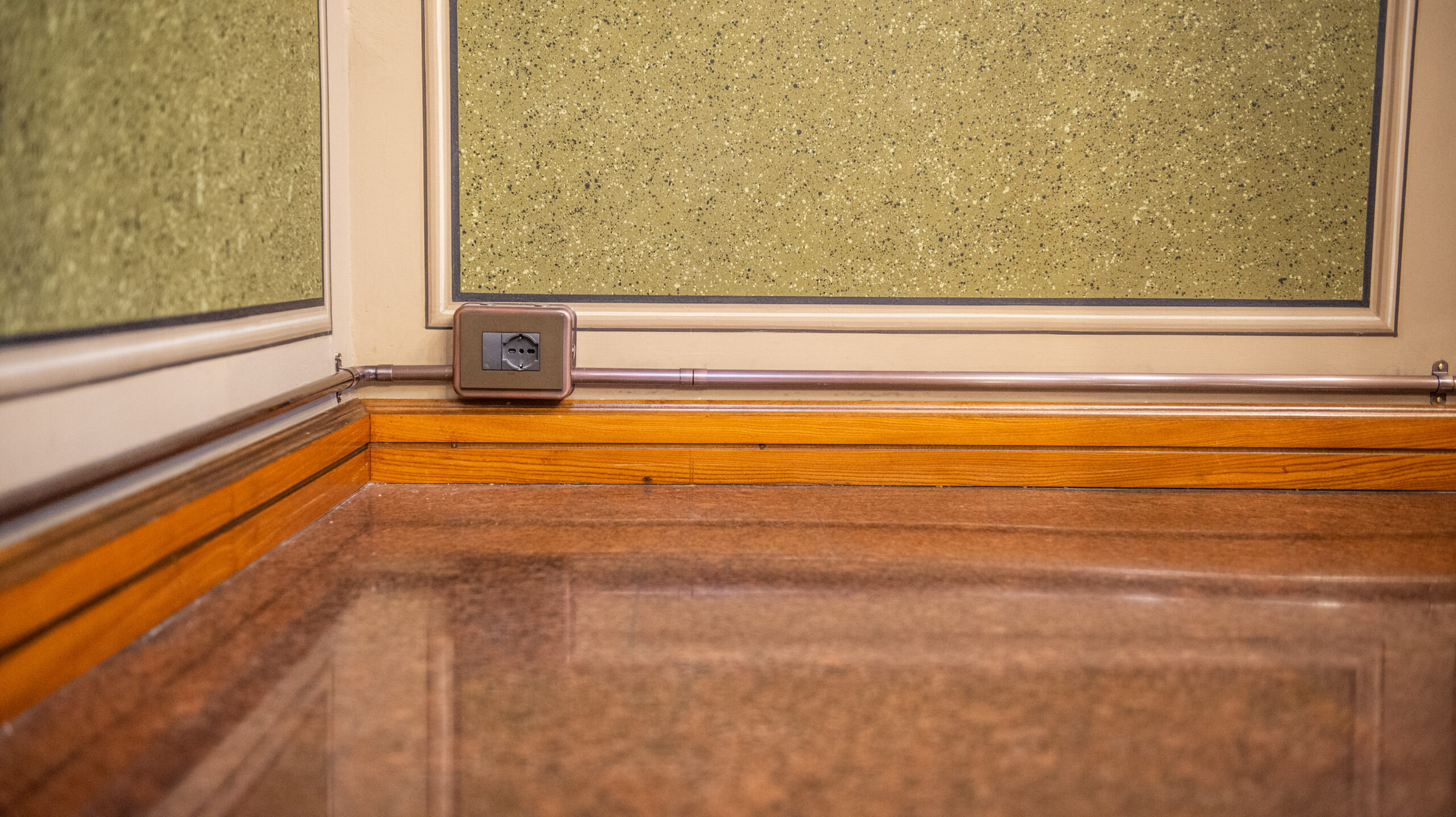 L’impianto elettrico in rame anticato firmato C’era una volta, installato durante il restauro de Palazzo del Bene, Rovereto