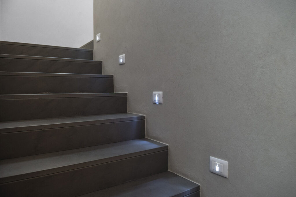 Gli interruttori Ave Touch diventano la firma di stile di una casa contemporanea di recente costruzione. Il caso preso in esame coinvolge una villa privata sita in provincia di Brescia. Qui per l’impianto elettrico è stata adottata la tecnologia di comando Ave Touch abbinata alle placche Young Touch. Una scelta quest’ultima che ha generato un apprezzabilissimo risultato dal punto di vista estetico grazie al design slim in tecnopolimero che contraddistingue questa linea. Il corpo colorato della placca si fonde con una superficie esterna trasparente definendo generando una percezione di tridimensionalità che valorizza il punto luce. La funzione dei comandi viene invece enfatizzata attraverso l’utilizzo di una retroilluminazione led che, trasparendo dal retro della placca, indica all’utilizzatore l’esatto punto da toccare – o sfiorare – per controllare la relativa azione.