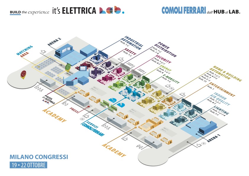 It’s ELETTRICA Lab si svolgerà nella più grande area congressi d’Europa, l’Allianz MiCo, ed occuperà 16.000 metri quadrati “I visitatori avranno a disposizione due Arene da 200 posti, un’Area Matching con 100 tavoli, l’Academy con 8 aule e 10 Aree Focus per entrare nel merito delle tematiche che affronteremo con professionisti di alto livello: energy, e-mobility, lighting, entertainment, industrial automation, power distribution, home and building automation, indoor air quality, safety e security” interviene Margherita Ferrari, Direzione Comunicazione, spiegando come sarà strutturato l’appuntamento “Nell’Arena avrà luogo la terza edizione del Forum del Futuro Quotidiano, nato nel 2020 con l’idea di concorrere alla nascita di nuovi contesti che contribuissero allo sviluppo, lasciando al centro, come scelta imprescindibile, l’individuo. Un’occasione unica per i nostri professionisti che potranno ascoltare e rapportarsi con ospiti d’eccezione, come Oscar Giannino, Carlo Alberto Carnevale Maffè, Renato Cifarelli, Don Chisciotte Podcast; Giuliano Noci, pro Rettore del Politecnico di Milano, Roberto Filipelli, Microsoft Cloud and Enterprise Business Group Director e Aldo Colombi, AD di Schneider Electric. E ancora Giorgio Barbaglia di Feel Venture, una community di imprenditori che investe in startup italiane.” – Prosegue – “L’Area matching invece sarà dedicata ad incontri one to one, personalizzati, tra il visitatore e il fornitore da lui prescelto: online, sul sito di it’s ELETTRICA, è possibile infatti costruire la propria agenda personale con gli appuntamenti desiderati. Mentre all’interno dei 10 Focus sarà possibile assistere agli incontri tenuti dai più importanti fornitori dell’impiantistica, per approfondire le tematiche afferenti a ciascuno di essi. Un’occasione unica: la possibilità di godere di un’intera giornata dedicata ad accrescere le proprie competenze e fare formazione, prendere contatti e intrecciare relazioni. E dare più valore al proprio business con i servizi e le soluzioni che Comoli Ferrari metterà a disposizione di ogni partecipante in uno spazio debitamente dedicato, l’Area Servizi appunto.”